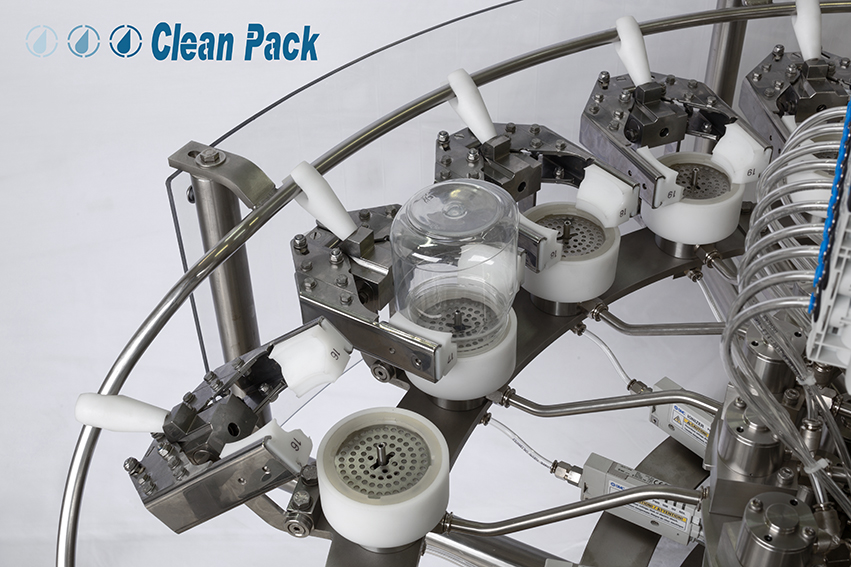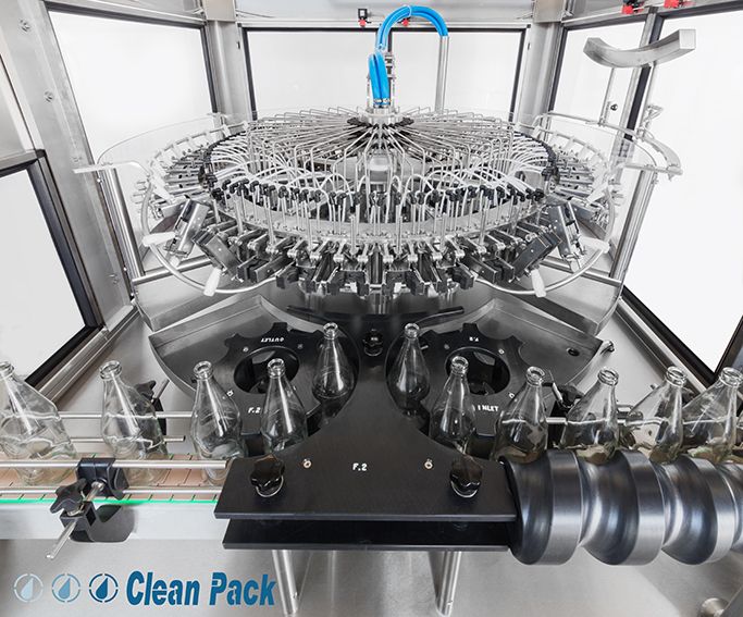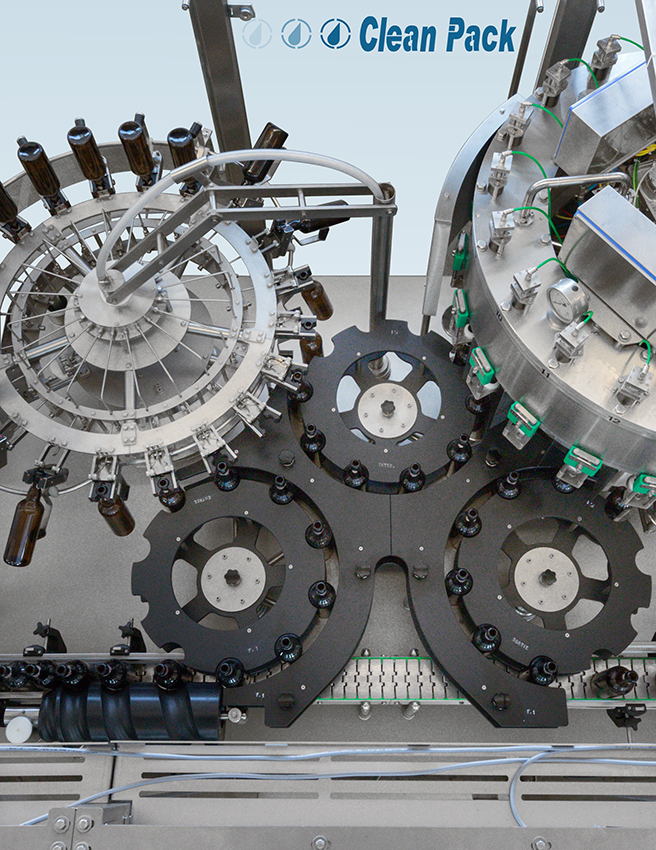 The Clean Pack Rinsers are available in Stand-alone and Single Turret versions. They are suitable for productions from 1,000 bph to 15,000 bph. Rinsing machines are designed to solve hygiene problems in bottles and containers of any type and material.